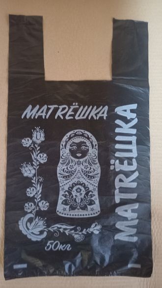 Пакет "Майка" Матрешка" черный 30х60-10.0гр /10упх50шт/ упаковка 500шт